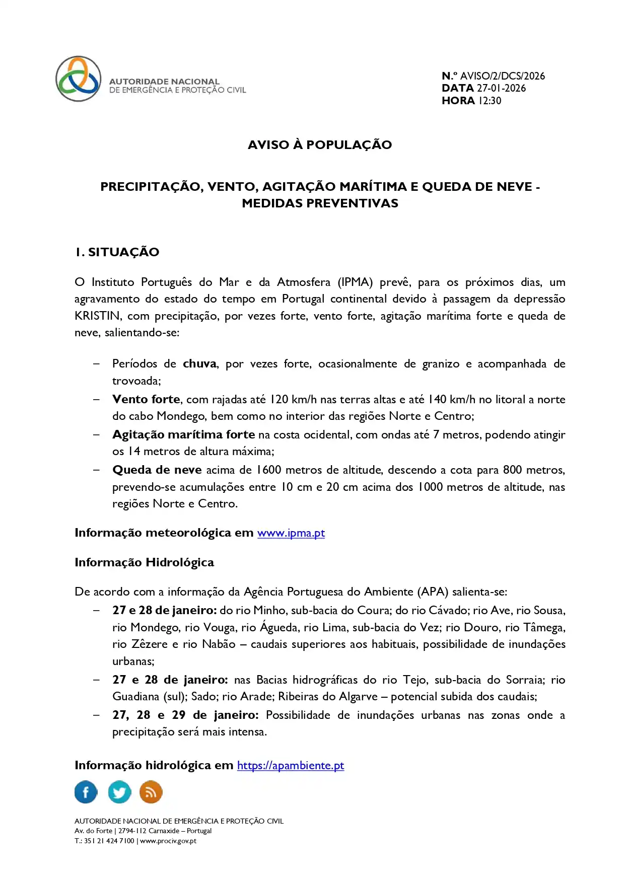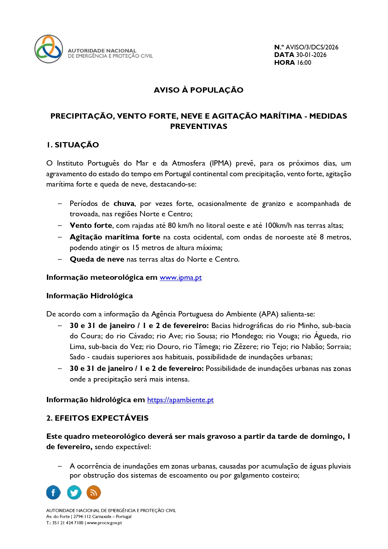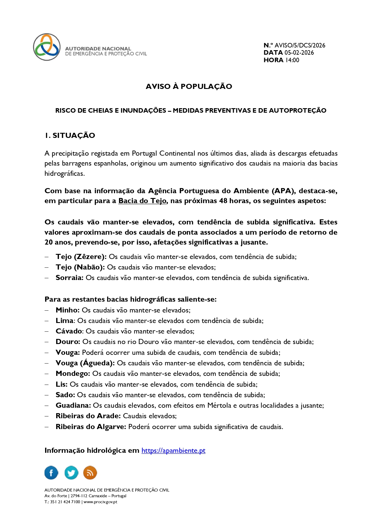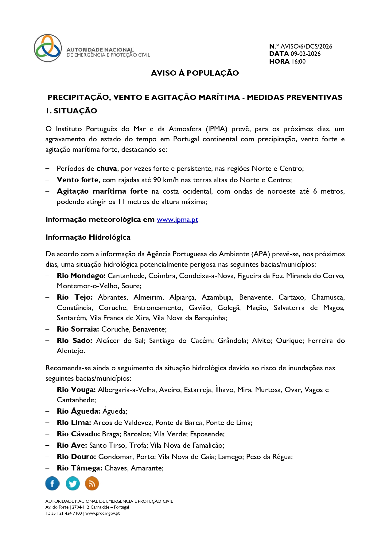 O IPMA emitiu avisos AMARELOS para o distrito de Castelo Branco, devido a precipitação e vento. 🌧 Precipitação 10 de fevereiro | 06h00 – 18h00 Chuva persistente, por vezes forte. 11 de fevereiro | 09h00 – 18h00 Chuva persistente, por vezes forte. 💨 Vento 11 de fevereiro | 12h00 – 21h00 Rajadas até 75 km/h, […]